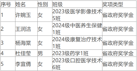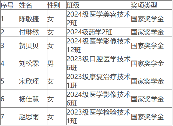 热烈祝贺,健康学院七名学子荣获国家奖学金,五名学子荣获省政府奖学金!