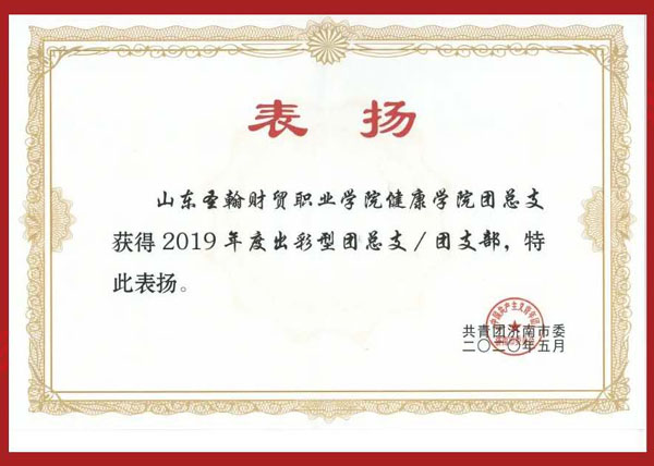 喜讯:山东圣翰财贸职业学院健康学院团总支,荣获共青团济南市委“2019年度出彩型团总支/团支部”。此项荣誉,我们深感荣幸之至,这是对我们健康学院过去一年工作的肯定和鼓励。