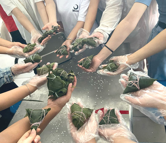 端午节来临,为了让同学们更好地了解传统节日,感受传统文化魅力,增强学院凝聚力,山东圣翰财贸职业学院在学校餐厅举办了“传承传统文化”包粽子特色活动。餐厅工作人员早早准备好了糯米、红枣、粽叶等,学院学子围成一桌,积极认真地包起了粽子。包粽子、卷粽叶、放米、夹枣、捆扎,大家严格按照步骤,体验着制作美食的快乐。