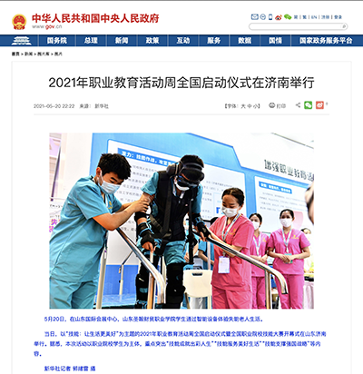 2021年职业教育活动周,健康学院的老年人失能模拟体验装置设备,互动性强,体验感十足。被济南市教育局选在2号山东职业教育创新发展高地展馆作为济南市特色技能技艺项目展示。新华社现场拍摄报道该体验项目,同期,中国政府网转载了新华社的报道。