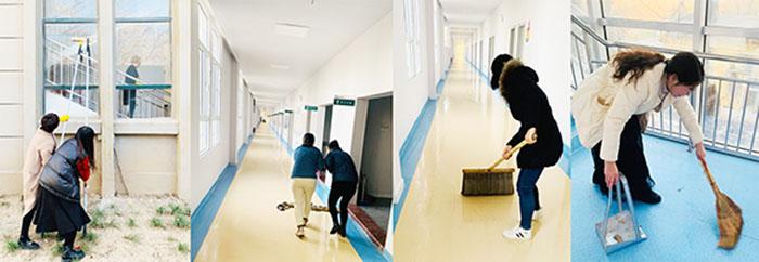 新学期、新思想、新起点、新面貌。健康学院为了迎接新学期的到来,给学院广大师生营造一个整洁、舒适的学习工作环境,更好地为学院理论教学及实验教学服务,近日进行了开学前卫生清扫工作。 健康学院全体老师在刘锋院长的带领下,积极开展了卫生大扫除活动,老师们不怕苦不怕累,手持工具,热情洋溢地进行卫生清扫。经过一上午的努力,老师们将实训楼一楼门厅、楼梯走廊、学院办公室及各个实训室清扫地干干净净。
