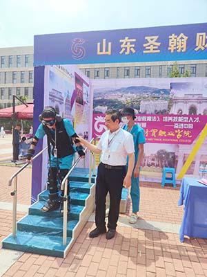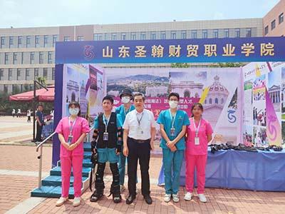 2022年6月28日,济南市暨章丘区职业教育活动周启动仪式在章丘中等职业学校举行。本届活动周主题为:技能让生活更美好。山东圣翰财贸职业学院副校长王开贞带领健康学院模拟体验装置项目成员参与该项活动。