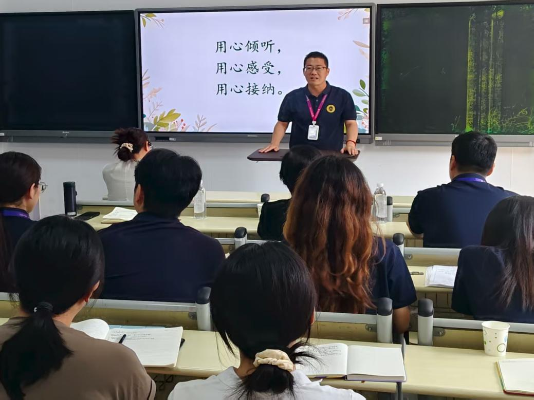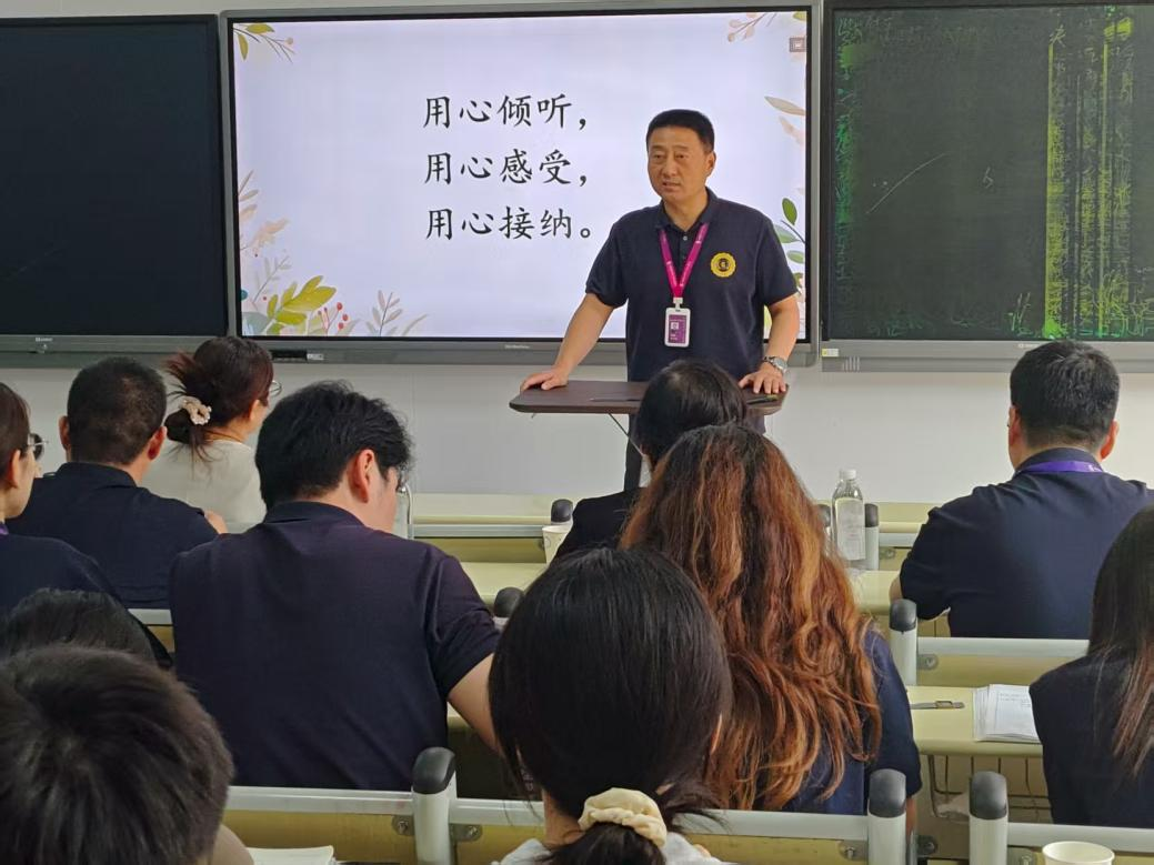 学生处副处长张勇在培训中提出,全体人员要在“四见”上下功夫,即“见任务就上、见第一就争、见先进就学、见问题就改”。这一要求为学院全体教职工划定新时代教育工作的行动坐标,鼓励教职工主动担当作为,以勇争一流的劲头追求卓越,以谦逊好学的态度借鉴先进经验,以刀刃向内的勇气改进工作短板,用饱满的热忱和专业的能力投身心理健康护航工作中。