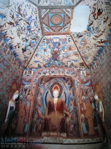 石窟壁画富丽多彩,各种各样的佛经故事,山川景物,亭台楼阁等建筑画、