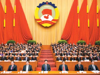 俞正声代表政协第十二届全国委员会常务委员会,向大会报告工作。