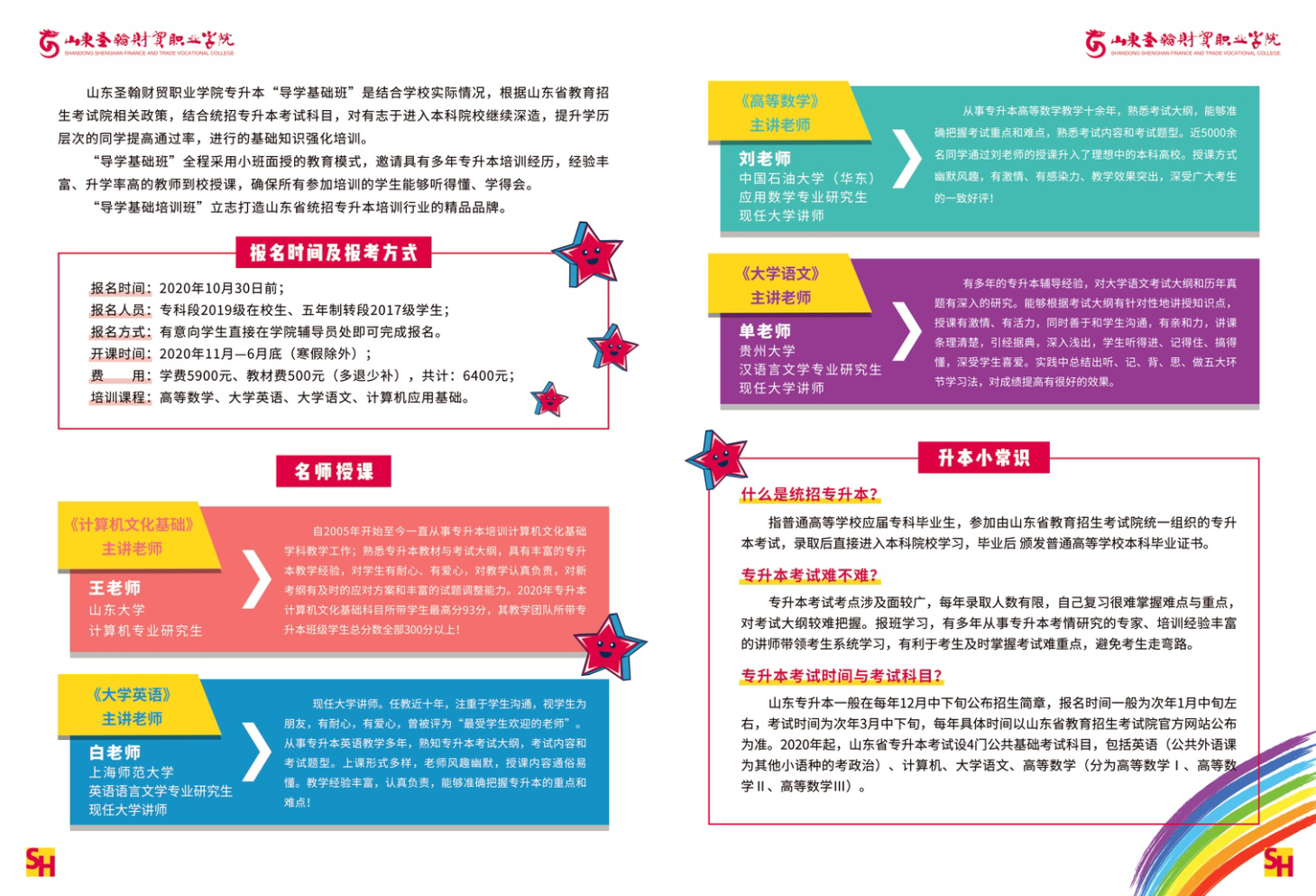 山东圣翰财贸职业学院2020年统招专升本“导学基础班”招生简章