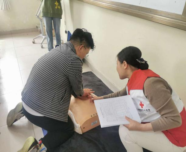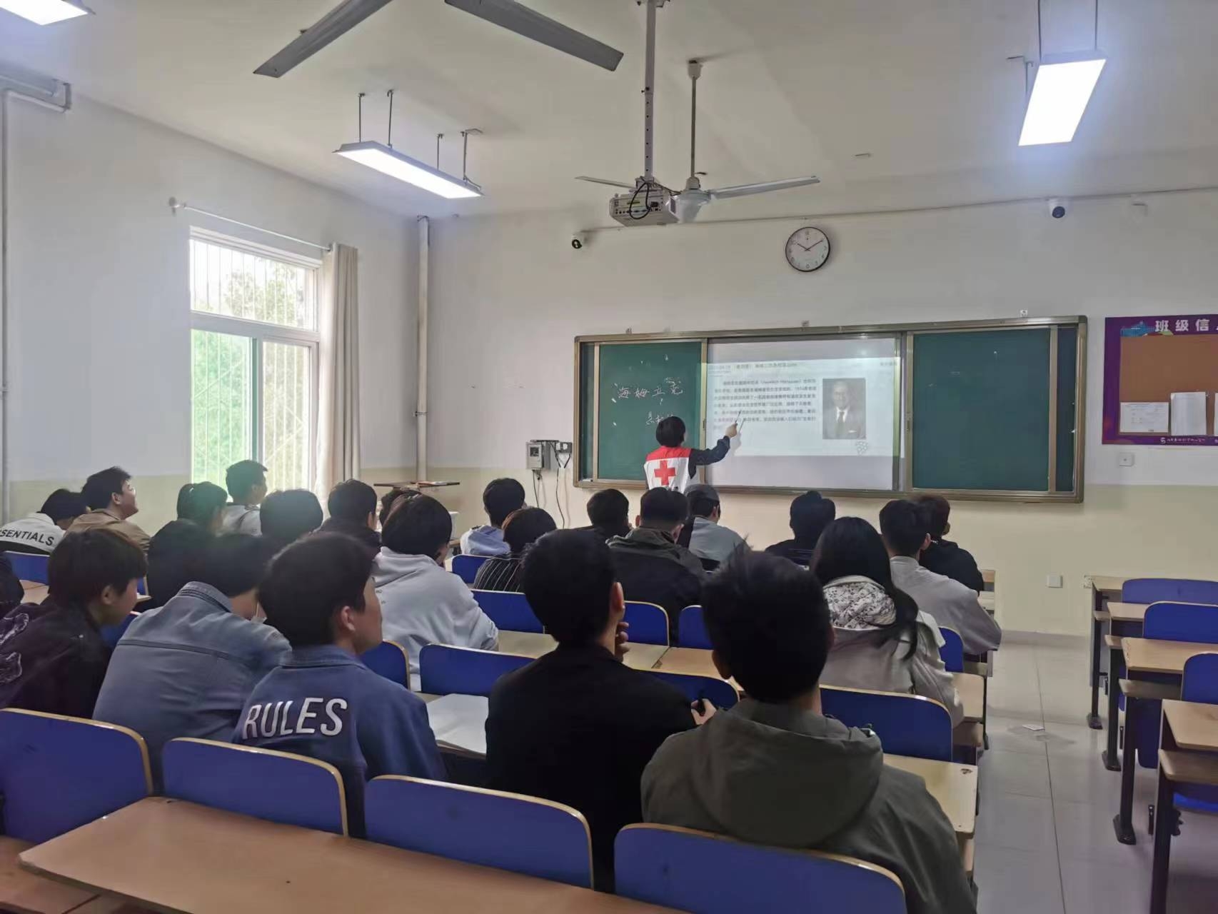在培训过程中,讲师围绕“救护概论、心肺复苏、创伤救护”等三大核心内容对应急救护的知识和技能进行细致全面地教授。向同学们详细介绍了红十字运动起源和基本原则,深入浅出地讲解了应急救护的目的、原则、程序及注意事项。利用理论讲解与实操演示相结合的方式,清楚直观地展示了心肺复苏操作技术、 AED 使用方法、异物梗阻及其他意外伤害急救处理技巧(海姆立克急救法)。同学们专心致志听讲,根据讲师授课的要点与老师积极互动。