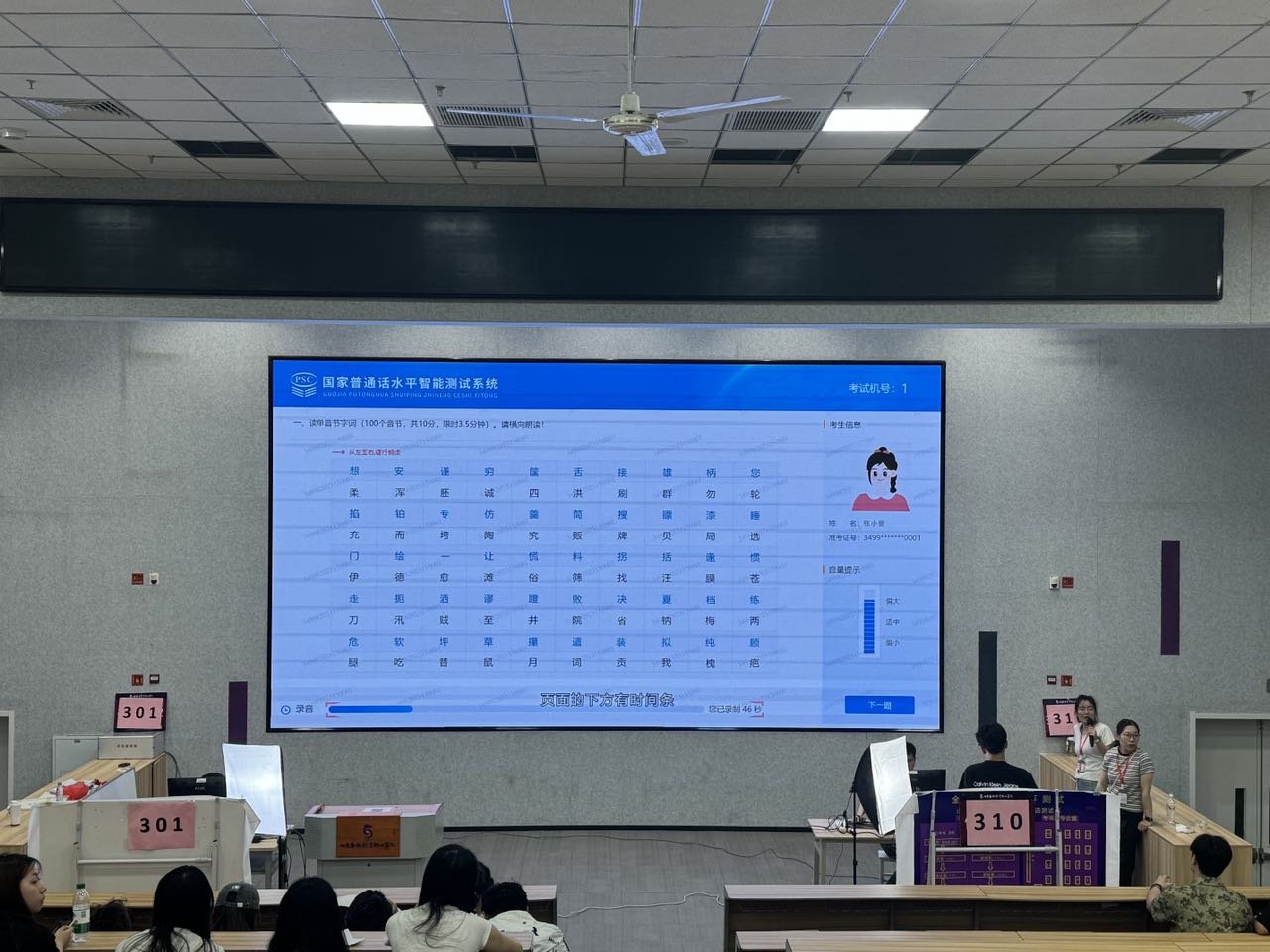 测试筹备阶段,继续教育学院严格按照上级主管部门要求将第四报告厅设为报到室,安排专职老师引导学生签到,运用“纸质名册+电子证件”双重核对机制,确保考生身份准确无误;吉纯楼301和310教室作为测试室,工作人员提前对录音、音响设备进行多轮调试,保障语音采集清晰无失真。同时,组织全体考务人员开展专项培训,通过理论讲解、模拟演练等方式,明确各岗位职责,细化考试流程,针对设备故障等突发情况制定分级应急预案,为测试顺利开展筑牢根基。