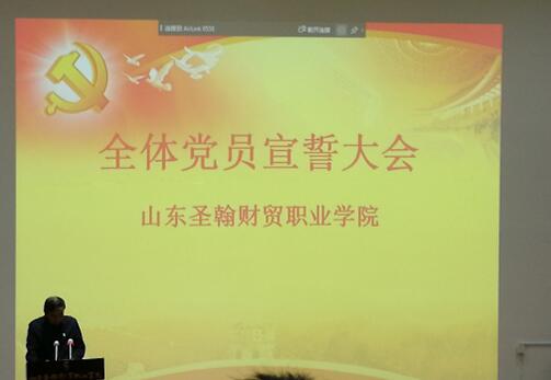 2019年12月4日下午13:00,第一报告厅,山东圣翰财贸职业学院党委组织了接收入党积极分子预备党员暨全体党员宣誓大会。