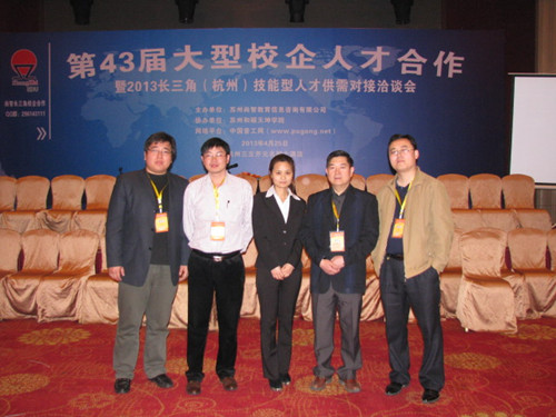 2013年4月25-26日,我校常务校长戈进杰教授、建筑工程学院郑伟院长、信息工程学院和财贸学院就业科长毕东祥、夏松勃老师一行四人奔赴杭州,参加了“第43届大型校企人才合作暨2013长三角(杭州)技能型人才供需对接洽谈会”。