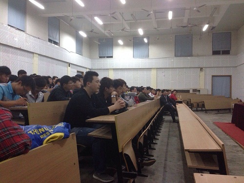 戈校长从日本工科大学的地理位置、交通条件、学生选择出国留学的种种优势以及出国后就业安置问题进行了详细的讲解。戈校长在日本九州大学攻读了硕士和博士,对于日本的文化和生活习俗以及日本就业方式等非常的了解;通过自身在日本8年的学习生涯,为同学们提供了很多在日本当地的学习经验和学习方法,包括在国外学生们如何通过自己努力打工来使自己的生活不断变好!戈校长还曾谦虚的对学生说只要学生付出和我一样的努力,相信有的同学今后一定比我强!在工科大学毕业以后学生们可以多项选择自己未来的就业发展方向,既可以继续深造攻读本科和硕士文凭,还可以留在日本当地最知名的几家建筑单位实习就业,当然也可以选择回国发展!同学们虽然对出国留学还存在着种种幻想和顾虑,经过了戈校长一系列的分析和讲解,还有工科大学领导对于我校学生的帮助,语言问题成功解决后,同学们表现的积极性比较高!