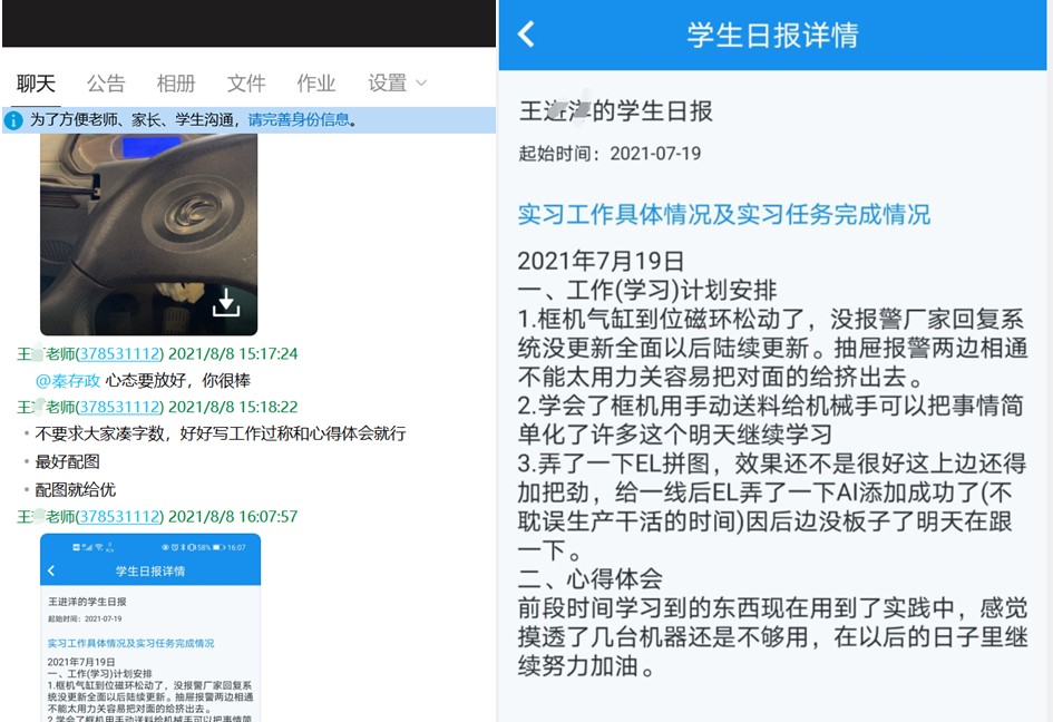 为了提高学生实习质量,30名实习指导教师通过习讯云每天与学生互动,每天考评学生,并建立建立实习指导师生QQ群,指导学生在工作和学习中遇到的问题,并指导学生填写实习日志。