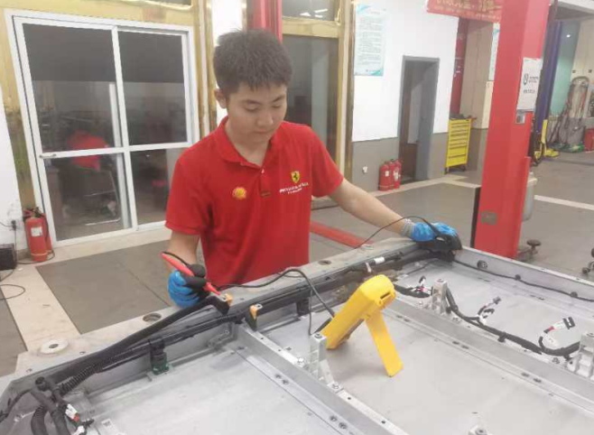 本次实习覆盖汽车机电维修、新能源汽车故障诊断、智能设备检测等核心岗位。企业为学生定制 “导师带徒” 培养方案,由资深技术骨干一对一指导,通过 “跟岗观摩 — 分段实操 — 项目实战” 三阶培养模式,引导学生参与车辆保养、电控系统检修、维修方案制定等全流程工作。实习首日,学生在企业智能化车间近距离接触新能源汽车电池检测设备,对车载诊断系统(OBD)应用等前沿技术表现出浓厚学习热情。