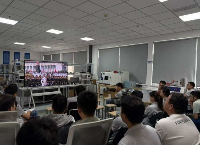 2025年9月3日,智能工学院在山东艾诺智能仪器有限公司实习的20名学生,与企业员工共同观看了“纪念中国人民抗日战争暨世界反法西斯战争胜利80周年”阅兵活动。此次活动是学院“校企协同育人”理念的生动实践,将爱国主义教育融入实习环节,引导学生铭记历史、砥砺前行。