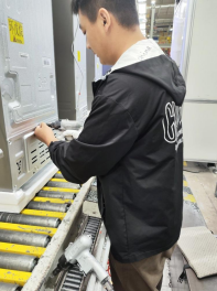 在青岛海尔制冷电器有限公司人力资源部相关人员的介绍下,付学虎老师对企业生产车间、质检中心和实习岗位,详细了解学生的工作内容与生活环境。在总装生产线旁,付老师观察学生参与冰箱组装流程,并与实习生亲切交流,询问其岗位适应情况、技能提升进展及生活保障问题。实习生表示:“在海尔的实习让我接触到先进的生产工艺和严谨的质量管理体系,专业实践能力得到了显著提升。”