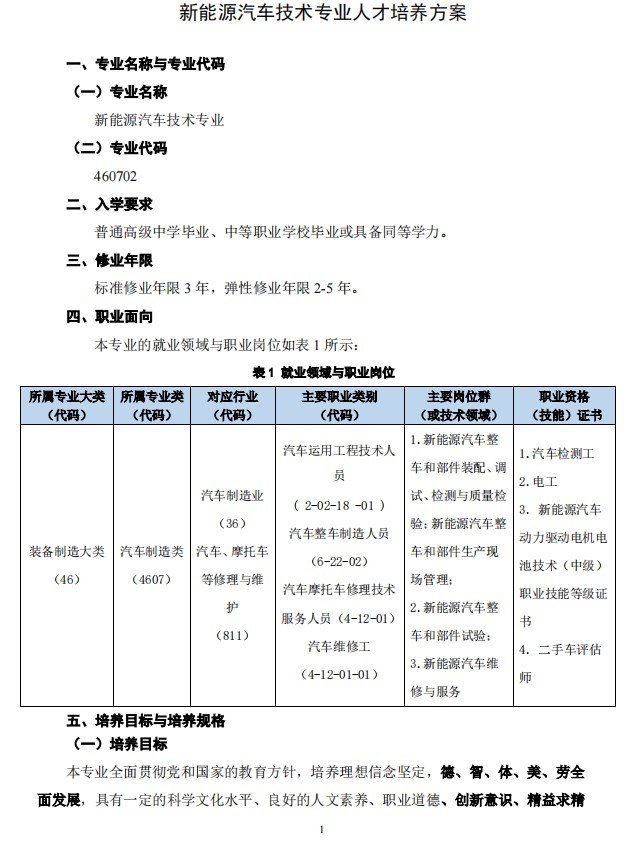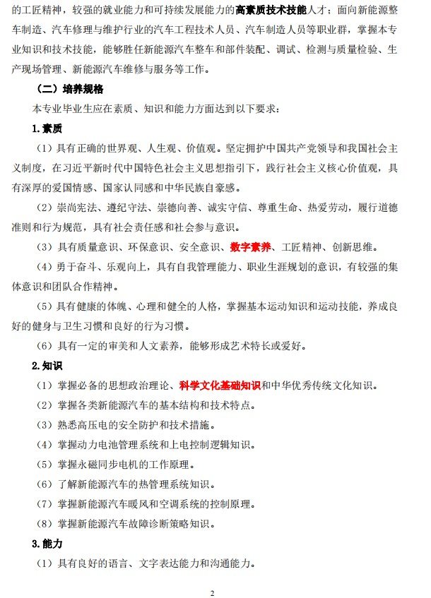 新能源汽车技术专业人才培养方案