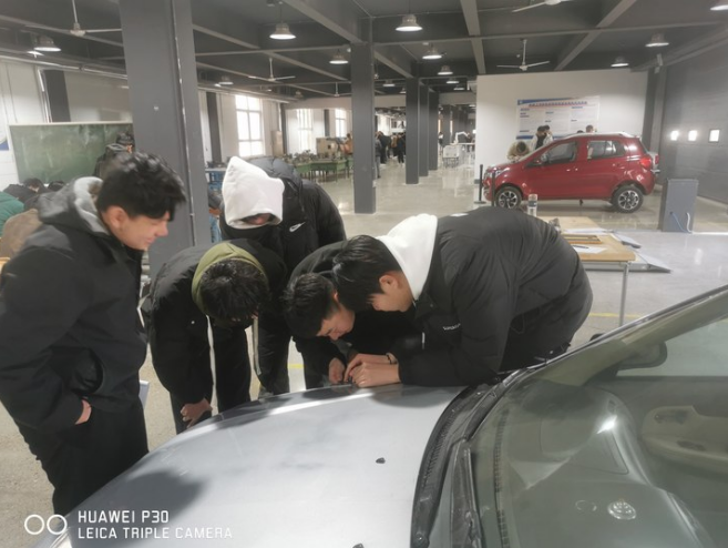 实训现场,学生们分组协作,围绕在实训车辆周围,有条不紊地开展测量工作。他们手持专业测量工具,眼神专注,仔细测量车身各处缝隙。在车门与车身、引擎盖与车身等关键部位,学生们严格按照测量规范,精准选取测量点,小心翼翼地操作测量仪器,记录下一组组数据。遇到数据异常时,小组内立刻展开热烈讨论,分析可能存在的误差原因,从测量基准偏差到设备校准问题,逐一排查,充分展现出严谨认真的学习态度。