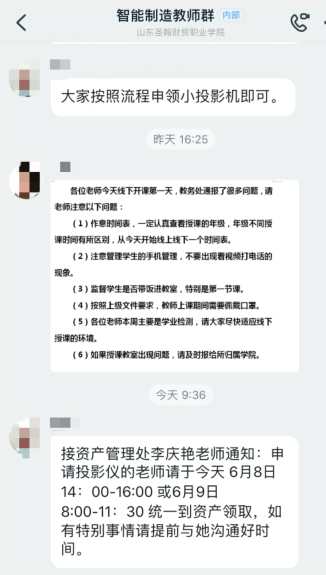 另外,学校对教学工作大力支持,提供投影仪等设备大力辅助线下教学。