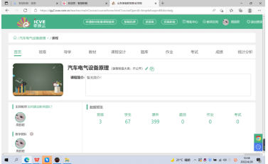 2、线上教学资源平台—职教云,学生手机上与其配对的APP软件叫云课堂智慧职教,下图是周老师建立《汽车电气设备原理》课程的截图。