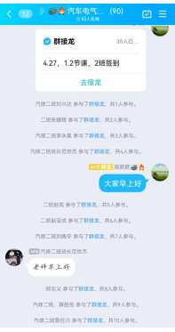 1、课前环节:上课五分钟前进行QQ群接龙签到,也会不定期在职教云中开启签到,检查学生到课情况。