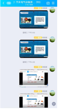3)周老师会在学生通过视频认识了汽车电器实物后,通过课件和课本再讲解具体的知识点,并让学生在课本上进行标记和记录,把重要知识点的课件截图发到群里面,让学生对该堂课的难、重点有更为直接的清晰认识。