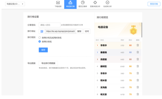 图11 学生完成星问卷测试题后成绩排名的截图