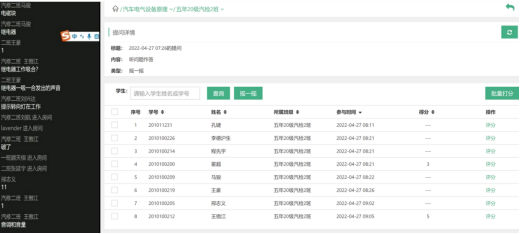 汽车教研室在教学方法上,形成了以周丽君老师为典型代表的优秀教学团队。周老师主要使用以职教云云课堂为主的教学平台,以智慧职教MOOC学院平台上的国家精品课《汽车电器设备构造与检修》在线资源为辅助,整合优势课程资源。课前通过群接龙签到,课中通过职教云的课程资源和课本上的知识点实现由点到面的全方位教学,并在整个教学过程中通过职教云上的讨论、随机提问等活动来监测学生的动态和掌握学生的学情。而课后周老师也会在职教云上发布一些课程相关的课件和视频,用以扩展学生的知识面,帮助学生构建更为完善的知识体系。