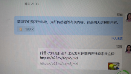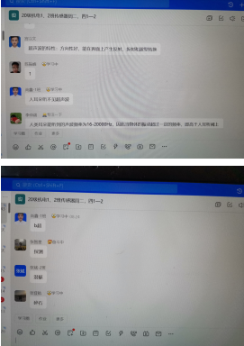 在正式上课之前,对上节课的内容进行适当的复习,会以提问的方式或者做题的方式进行回顾。接着针对学生的预习情况,我提出个问题,让同学们在评论区自由回答。回答正确的同学进行加分,记在平时的考核里。下图是20级机电班同学在回答超声波的有关具体应用(提前预习的内容),从回答中可以看出部分同学已经做了认真的预习。