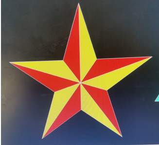 在教学过程中,我也经常让同学们理论联系实际,对于所学的内容应用到日常生活中,进行扩散性思维,比如我们在学习画多边形指令时,让同学们画五角星,并设计一面五星红旗,在此增强学生的爱国之心,热爱我们的大中国。如下图: