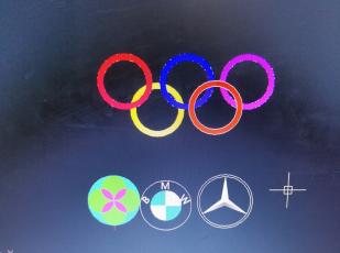 在学习圆的指令时,让同学们绘制五环标志,车标等。