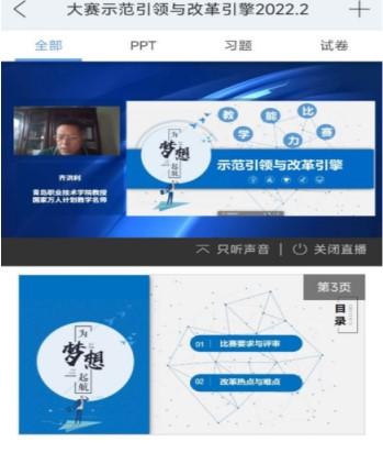 8月10日下午14点山东职业学院特邀国家万人计划教学名师、青岛职业学院教授齐洪利以《教学能力比赛暨示范引领与改革引擎》为题目做了精彩的线上教学授课。齐教授从比赛要求与评审和改革热点与难点两个方面结合2022年教学能力大赛要求和近3年国赛获奖案例进行了讲授。在答疑环节学员们提问多而杂,齐教授回答条理清楚、答案精辟深刻。今日第三期线上培训结束。自学部分还有《教学课件美化级课件动画制作》、《微课设计与制作》、《2020教学能力比赛备赛建议》、《全国职业院校教学能力建设和提升》4个项目。本次培训8月30日结束。专职教师苏茂斌全程参加本次培训。他认真听讲、高质量完成各项练习和作业,保证以优异成绩圆满完成本次省培任务。