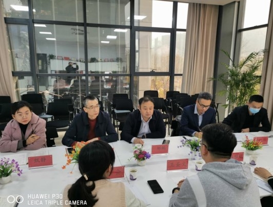 11月18日下午,大学城管理委员会高校联络服务部部长邹鹏一行来校交流座谈。智能工学院王圣文、教学副院长孙会及相关部门负责人参加座谈。