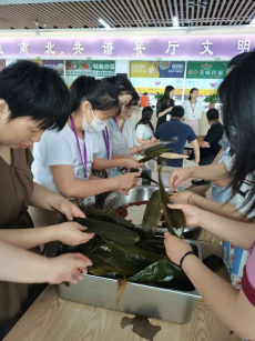 活动得到了大家积极响应,智能工学院老师们也饶有兴致地投入了此次学习,学校工会准备糯米、粽叶等原材料。老师现场示范讲解了要领后,大家动手实践,发现看似简单的一弯一绕,技术难点还是挺多的,于是喊老师手把手教的,现学现卖互相切磋的,活动现场一片欢腾,笑声连连。大家拿着自己的“处女粽”,好不得意,或炫耀,或拍照留念……包进粽子里的何止是糯米和红豆,还有大家高涨的热情和欢乐。