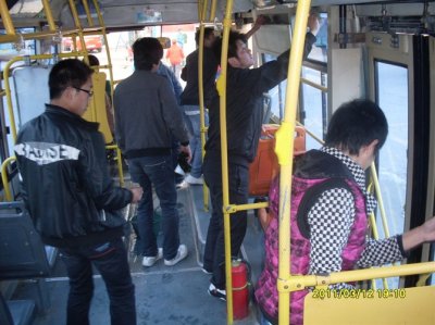 3月14日上午,在建筑工程学院学生会主席团成员的带领下,十几名大一学生会成员前往公交运营中心为86路公交车打扫卫生。
