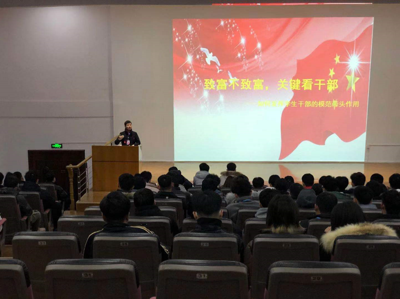 按照学校团委的要求,2020年12月13日晚,智能工学院团总支组织开展了以“致富不致富,关键看干部”的学生干部培训活动,就如何发挥学生干部的带头作用问题进行了重点讲解。培训由智能工学院团总支书记王栋主讲,来自学院学生会、自律委员会、各团支部、各班级的140余名学生干部参加了培训。