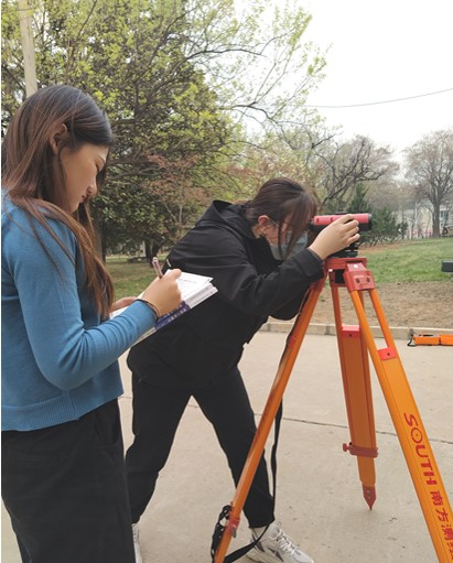 伴随着春暖花开,本学期工程测量这门课程的实训任务又开始了。在学习了水准测量这一知识点后,同学们进行了实训操作,利用所讲理论知识完成未知点高程测量的任务。通过上节课讲解的水准仪的安置、整平、瞄准、读数这一系列操作流程,大家都掌握了仪器的基本操作,再结合上课讲解的水准测量的原理,同学们非常认真的进行测量,都按要求完成了实训任务。