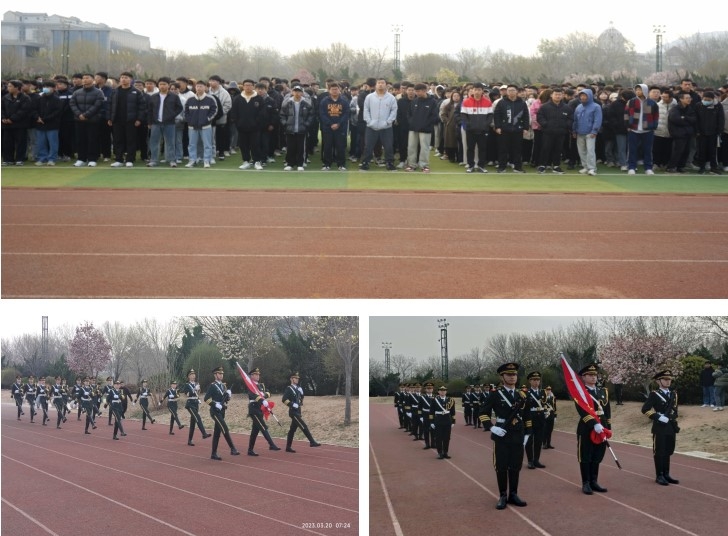 为进一步加强爱国主义教育,引导学生以更加饱满的精神状态投入到学习工作和生活中去,坚定理想信念,报效祖国,山东圣翰财贸职业学院智能工学院于3月20日早上7:20在操场隆重举办升旗仪式。智能工学院学生管理院长王栋、团委书记宋占喜及智能工学院全体师生一起参加升旗仪式。