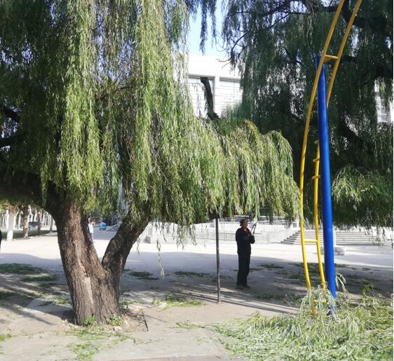 每修剪完一棵树,他们就会在树下的石墩中休息一会,探讨一下下一棵树怎样剪,要剪成什么样才合适,这是多么敬业啊!剪累了就休息一会,和周围的人聊聊天,然后继续工作。