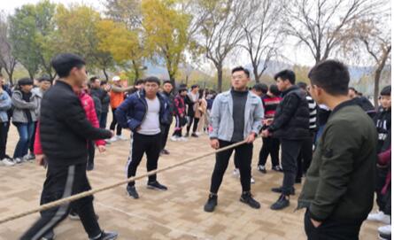 从轻松的气息到紧张的气氛,比赛正式开始了。只见队员双手紧握长绳,两腿呈弓步行,当比赛的哨声响起时,队员们憋足了劲,使劲的往后拉,没什么理由。或许是双方实力不对等。对方直接兵败如山倒,被我们没用多少力气就轻松取得了胜利,信心满满的我们认为胜利就是我们的了。最后一战,双方都压上主力军,原本以为会双方势均力敌。会坚持许久,怎奈何我方力大无穷,没有坚持多久,对方就开始左摇右晃,就被我们轻而易举的拉了过来。胜利最终属于我们。离不开每个人努力,离不开大家的团结一致。