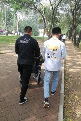 无论晴天雨天,每天上课的路上,在校园的路上,都会看到两个男生推着一个坐着轮椅的男生,有说有笑地往返于教室和宿舍、食堂之间。