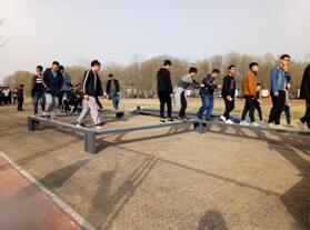 训练分为五项,建筑工程学院的学生分为两对,对翻越高度,平衡力,是否恐高,负重前行等能力进行培训,这些在将来进入公司都有很大的影响,能让同学们更加精准,熟练的做完一系列活动,更加巩固这些技能,这些有针对性的活动使同学们兴致盎然,积极的参与进去。