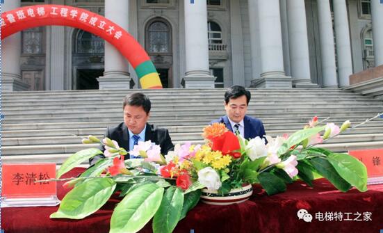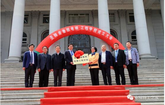 4月16日,圣翰金鲁班电梯工程学院揭牌及成立大会在山东圣翰财贸职业学院隆重举行。山东金鲁班电梯有限公司董事长王涛、董事总经理王克洪、培训管理中心总监、电梯培训学校校长李清松,山东圣翰财贸职业学院校长刘淑云、党委书记张东超、副校长赵雷、汽车工程学院院长刘锋等出席,学院相关专业1200名师生共同参加。汽车工程学院副院长王鹏主持了成立仪式。