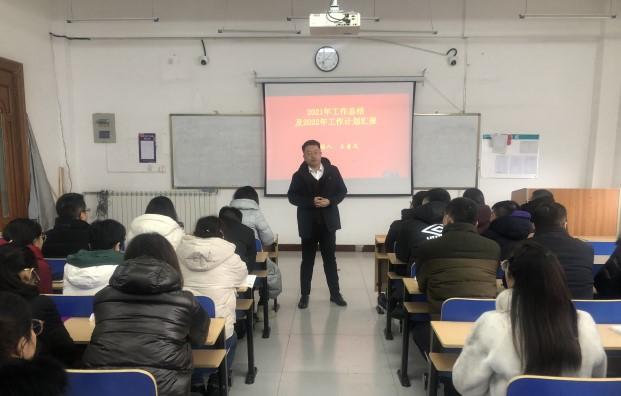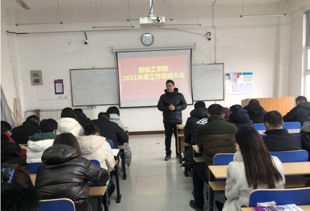 为深入学习贯彻党的十九届六中全会精神,全面总结学院工作,智能工学院在吉纯楼5楼511召开了2021年度工作总结及2022年工作计划会议。会议由智能工学院院长王圣文主持,总结工作由教学副院长孙会和学管副院长杨其义报告,智能工学院全体教师参会。