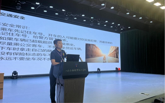 报告伊始,栾新宝老师就“如何防盗”、“如何防骗”、“人身安全”、“防火须知”和“交通安全”五大板块展开了详细说明。报告中,栾老师结合真实案例生动形象地对常见的安全盲区进行描述。他强调,同学们要时刻将安全意识排在首位,这不仅是对自己负责,更是对家庭负责,要将侥幸心理彻底的在心底消除。