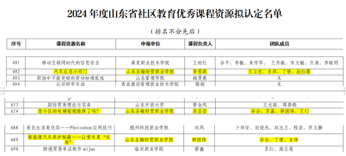 12月18日,山东省教育厅公示了2024年度山东省社区教育优秀课程资源遴选结果,智能工学院报送的3门课程《汽车应急小窍门》、《您小区的电梯按规维保了吗?》《新能源汽车养护秘籍——让爱车更“长寿”》成功入选。