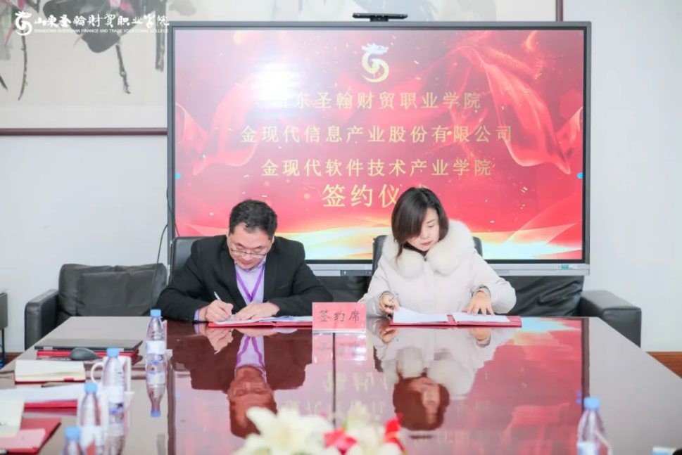 为进一步深化产教融合,创新人才培养模式,助力学校高质量发展。2024年1月12日,山东圣翰财贸职业学院与金现代信息产业股份有限公司共建金现代软件技术产业学院签约仪式在山东圣翰财贸职业学院府邸二楼会议室举行。