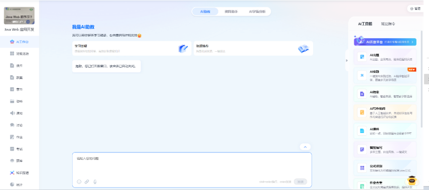 在《Java Web应用开发》等专业课程中,教师们已率先试点使用AI教学平台。通过“AI助教”模块,学生可实时获取编程问题解答、知识点推送及个性化学习建议;教师则借助AI工具实现自动出题、智能批改,大幅提高教学效率。在计算机实训室,学生们围坐于电脑前,通过AI驱动的实验平台完成代码编写与调试,课堂互动性显著增强。