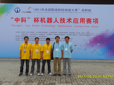 2011年6月25-29日,我院组队参加了在天津举行的“中科杯”全国职业院校技能大赛“机器人”组的比赛,虽然此次比赛没有取得奖励,但是机器人全由我校学生自己制作,极大地锻炼了他们的动手能力提高了他们的创新能力。同时我们看到了我们存在的不足和其他院校存在的差距,我们将取人之长补己之短,树立信心,实事求是,迎接新的机遇和挑战。