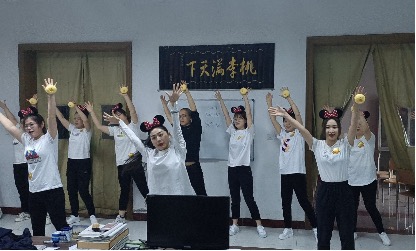 从4月8日中午开始,每天利用半小时的午休时间,大家一起动起来,跟着欢快的节奏,训练的非常积极、刻苦、努力、用心,队员们把每一次的练习都当作最后的比赛,来提高自己的效率。在最后参赛的队形、道具、环节上群策群力,院领导亲自负责采购,花了相当多的心思。