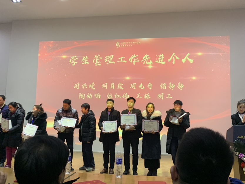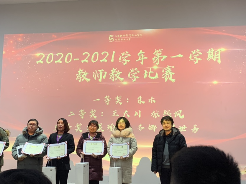 欢快的音乐声中,颁奖仪式激动人心。我们信息工程学院也收获颇丰:齐娜老师荣获了2020-2021学年第一学期教师教学比赛三等奖;许雁老师被评为2020年招生优秀区域主管;张红伟老师被评为学生管理工作先进个人。刘光耀校长和刘波副校长亲自为获奖老师颁发奖品和证书,对他们表示祝贺并合影留念。